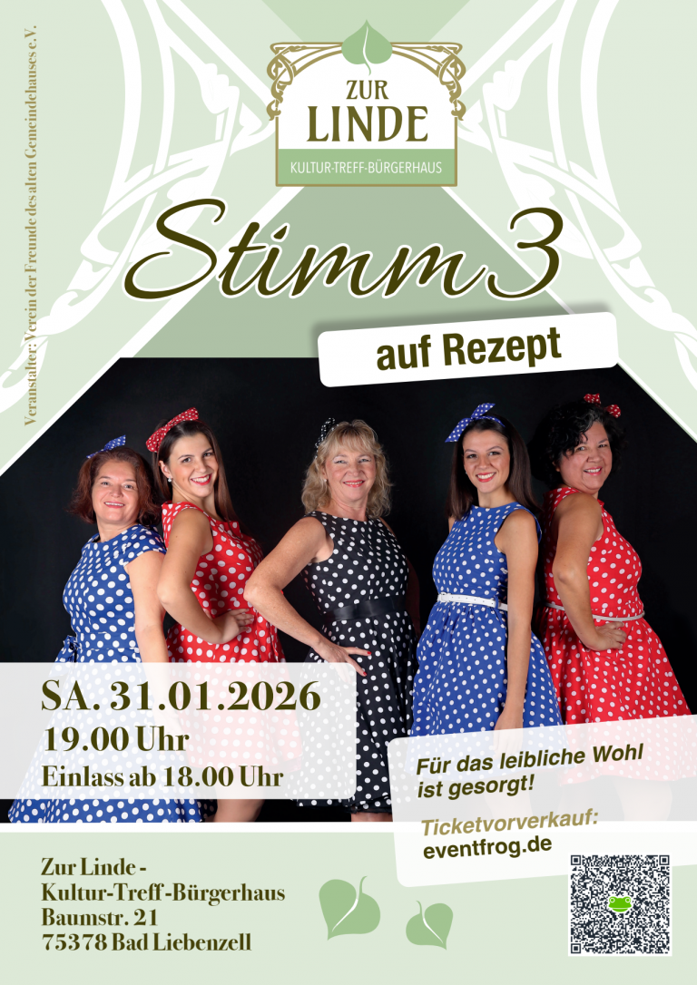 Stimm3 – auf Rezept Stimm3 – auf Rezept Sa. 31.01.2026, 19 Uhr (Einlass ab 18 Uhr)Abendkasse 18 Euro Eine Veranstaltung…